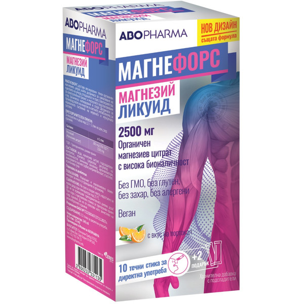 АБОФАРМА МАГНЕФОРС ЛИКУИД ПОРТОКАЛ Течни сашета 2500мг х 10