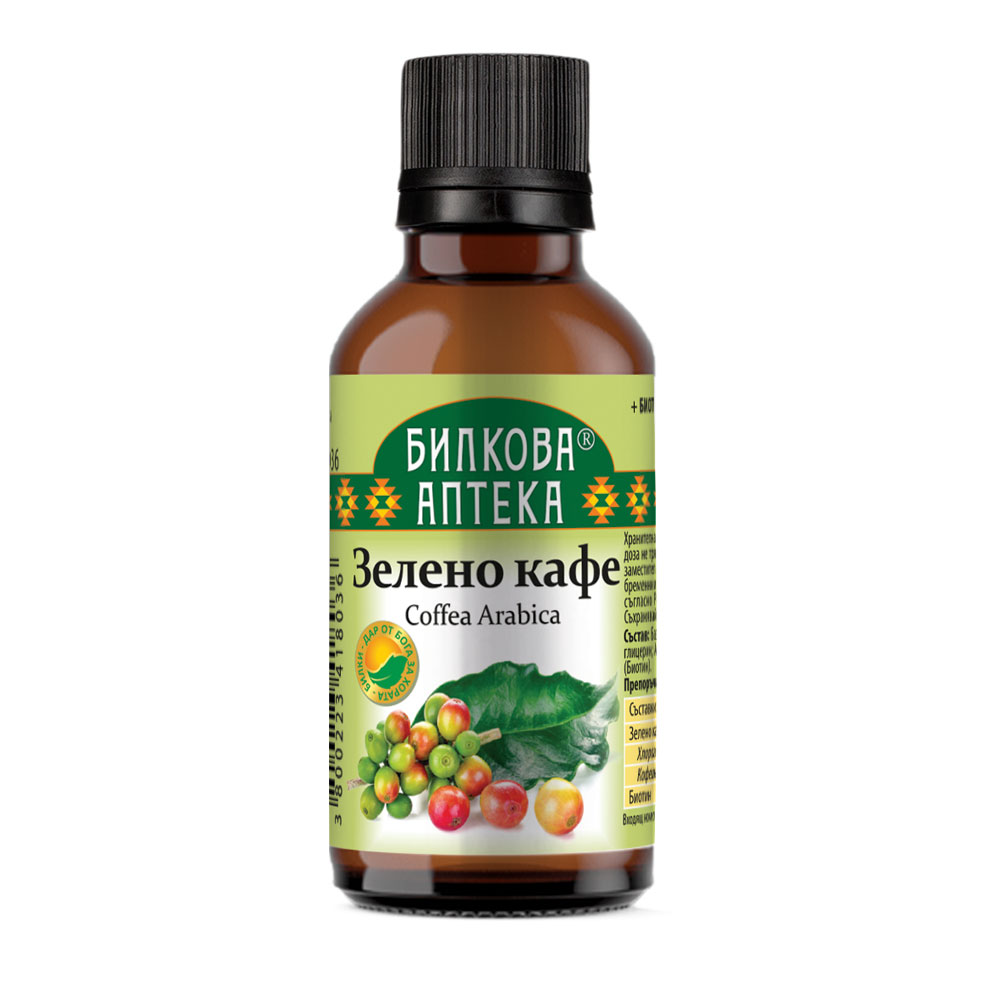 Билкова тинктура зелено кафе подпомага контрола на телесното тегло, стимулира метаболизма и има силно антиоксидантно действие. Подкрепя нормалните нива на кръвната захар и спомага за поддържане на енергията и жизнения тонус.