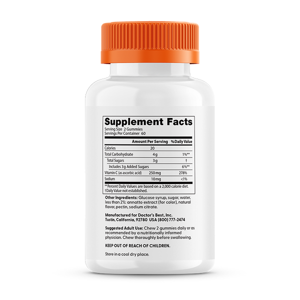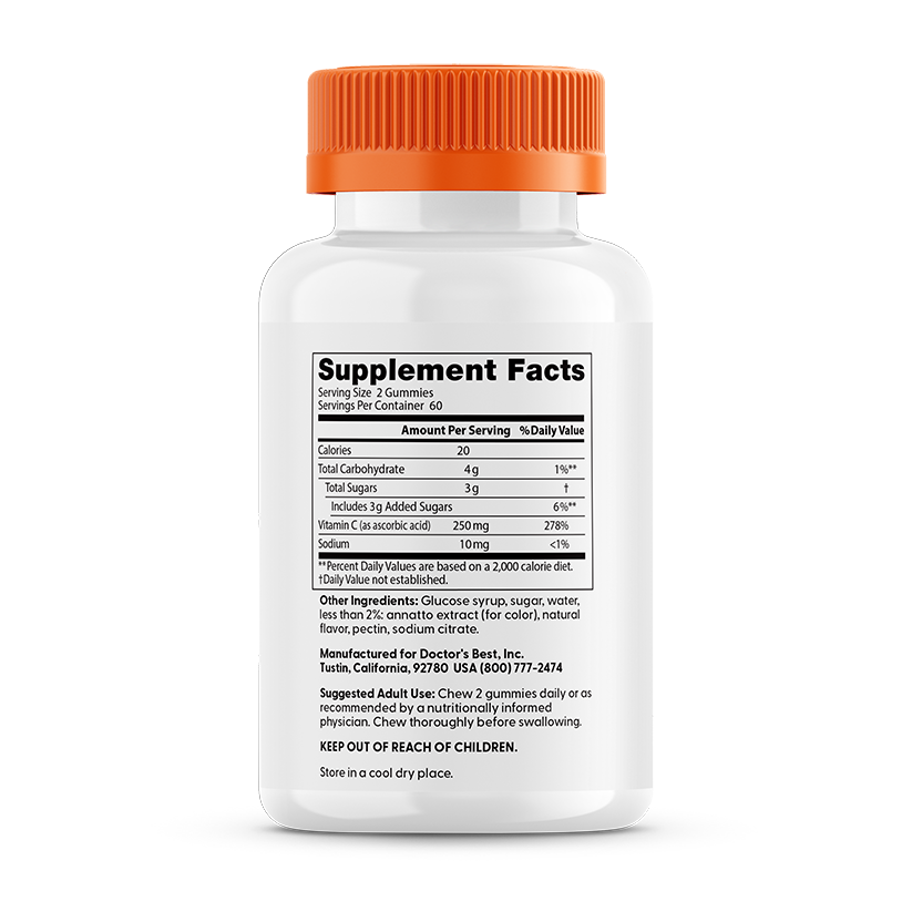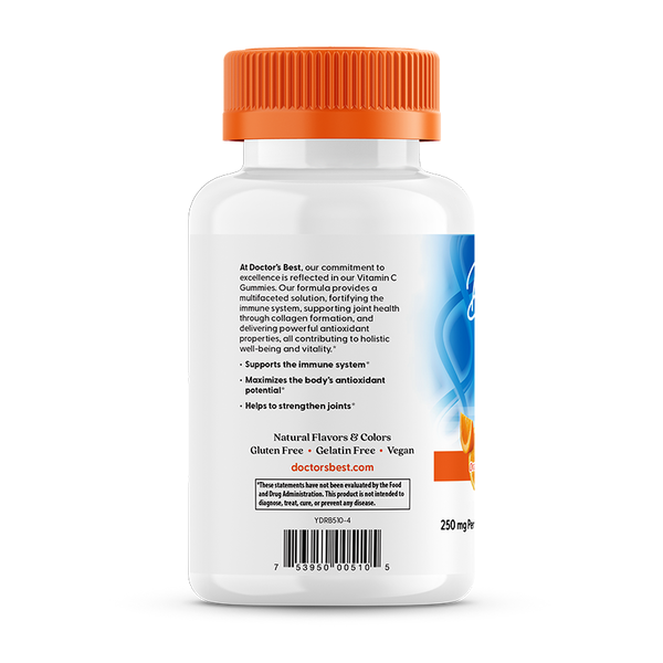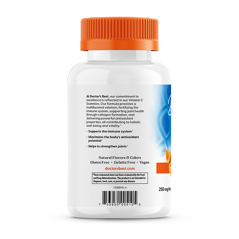 Открийте удоволствието от грижата за здравето с Doctor's Best Vitamin C Gummies в неустоимия вкус Orange Bliss. Тези желирани таблетки доставят необходимата дневна доза витамин С, като същевременно елиминират нуждата от преглъщане на големи хапчета или капсули. Продуктът е формулиран без желатин, използвайки плодов пектин, и е свободен от глутен и соя, което го прави идеален за вегани. Витамин С е жизненоважен за неутрализирането на свободните радикали в тялото и поддържането на жизнеността. Освен за имунитета, тази добавка е важна за поддържането на здрави стави и еластична кожа чрез подпомагане на колагеновия синтез.