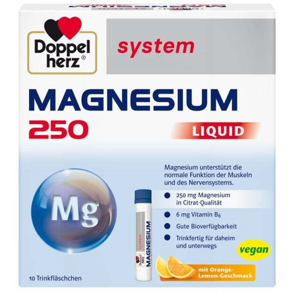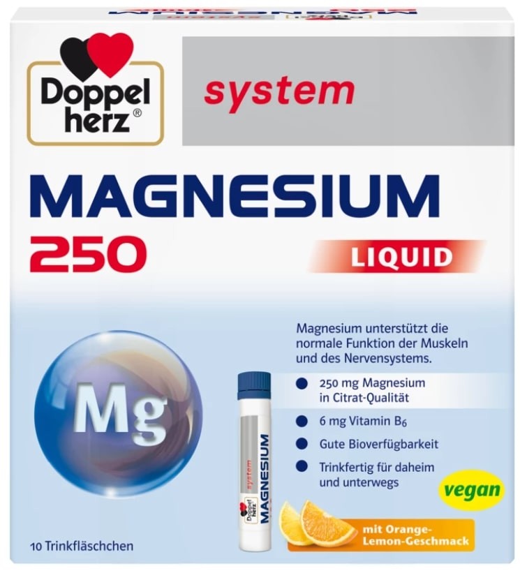 ДОПЕЛХЕРЦ СИСТЕМ МАГНЕЗИЙ е удобна течна форма на магнезий, осигуряваща 250мг магнезиев цитрат за бързо и ефективно усвояване. Подкрепя мускулната функция и нервната система, намалява чувството за умора и е подходящ при активен начин на живот, спорт или повишено натоварване. Витамин В6 допълнително стимулира енергийния метаболизъм и подпомага образуването на червени кръвни клетки. Формулата е създадена за лесен прием без вода.