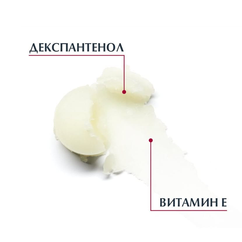Състав: течен парафин, микрокристален восък, октилдодеканол, хидрогениран полидецен, масло от семена на рицин, цетил палмитат, полиглицерил-3 диизостеарат, пантенол, етилхексил триазон, бутил метоксидибензоилметан, цетеарил алкохол, бис-диглицерил полиациладипат-2, миристил миристат, c20-40 алкил стеарат, глицерин, карнаубски восък, вода, токоферил ацетат, масло от ший, масло от семена на жожоба, бизаболол, пчелен восък.