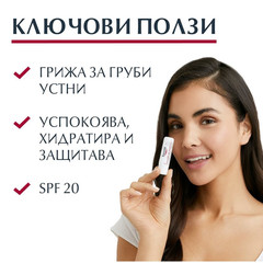 Погрижете се за чувствителните си устни с двойния комплект Eucerin Lip Active. Този нежен балсам осигурява незабавно облекчение и защита за сухата и напукана кожа. Активните съставки, включващи декспантенол и витамин Е, подхранват в дълбочина и предпазват от оксидативен стрес и загуба на влага. Добавеният SPF 20 е от съществено значение за защита от слънчево изгаряне и преждевременно стареене, причинено от UV лъчите. Продуктът е дерматологично тестван и доказано подобрява състоянието на устните при редовна употреба.