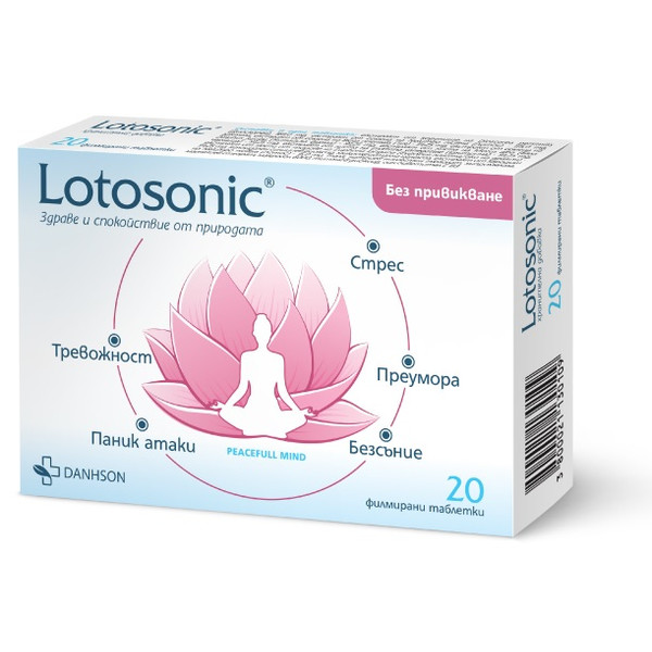 Лотосоник® е натурална билкова формула, вдъхновена от традиционната източна медицина и създадена за подпомагане на нервната система при състояния на стрес, тревожност и нарушения в съня. Комбинацията от растителни екстракти подобрява настроението, подпомага емоционалния баланс и съдействa за възстановяване на качествения сън. При редовен прием оказва благоприятно въздействие и върху мозъчната дейност, храносмилателната и сърдечно–съдовата система.
