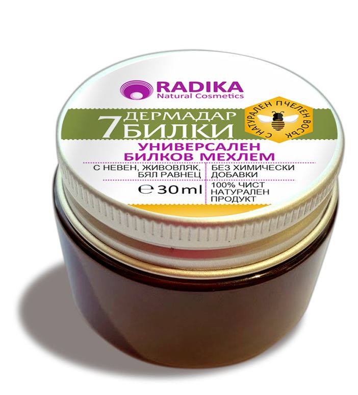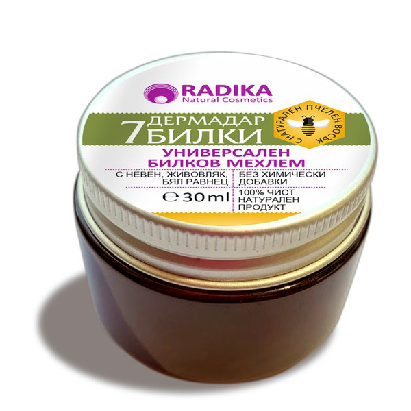 Билков мехлем със седем билки от Биохерба, който помага при кожни раздразнения и всякакви кожни проблеми като дерматити, изгаряния, обриви и други.