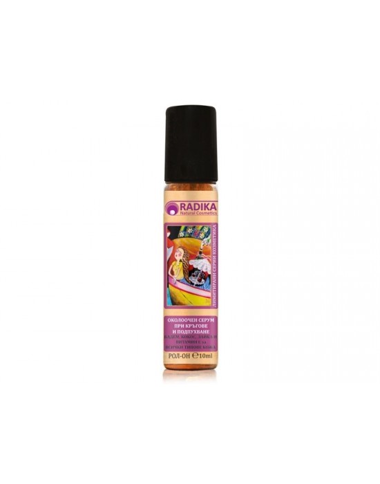 Радика околоочен серум против тъмни кръгове и подпухване е изцяло натурален продукт, създаден от студено пресовани растителни масла и етерични екстракти. Комбинацията от бадемово масло и био кокосово масло осигурява дълбока хидратация и мекота, като подпомага възстановяването на кожата. Лайката е известна със своето успокояващо и тонизиращо действие и е особено подходяща за зоната около очите. Витамин Е защитава кожата от оксидативен стрес и преждевременно стареене. Рол-он формата прави серума удобен за ежедневна употреба и масаж.