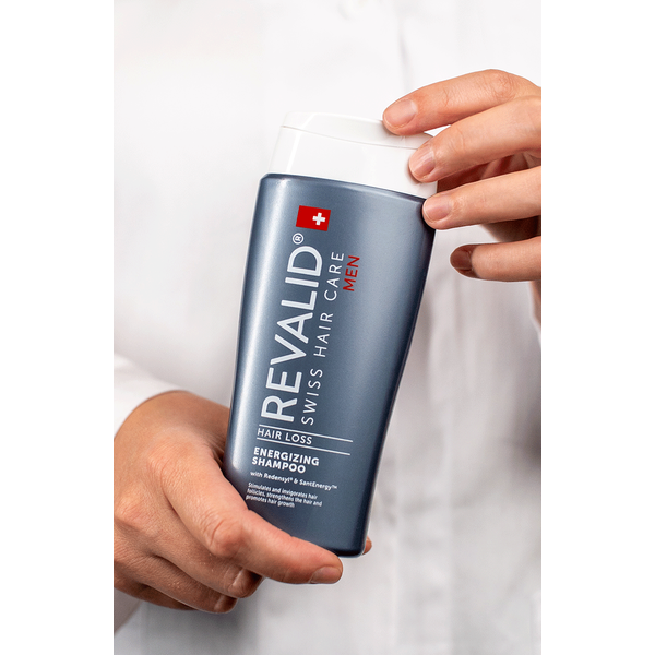 Шампоанът за борба с косопада за мъже от марката Ревалид съдържа иновативната съставка SantEnerg, извлечена от растението Yerba Santa, която стимулира дейността на фоликулите на косата и клетките в корена. Комбинацията от Redensyl и SantEnergy предпазва косата и скалпа от вредното въздействие на свободните радикали и оксидативните увреждания, като същевременно подпомага укрепването на косата и насърчава нейния растеж.