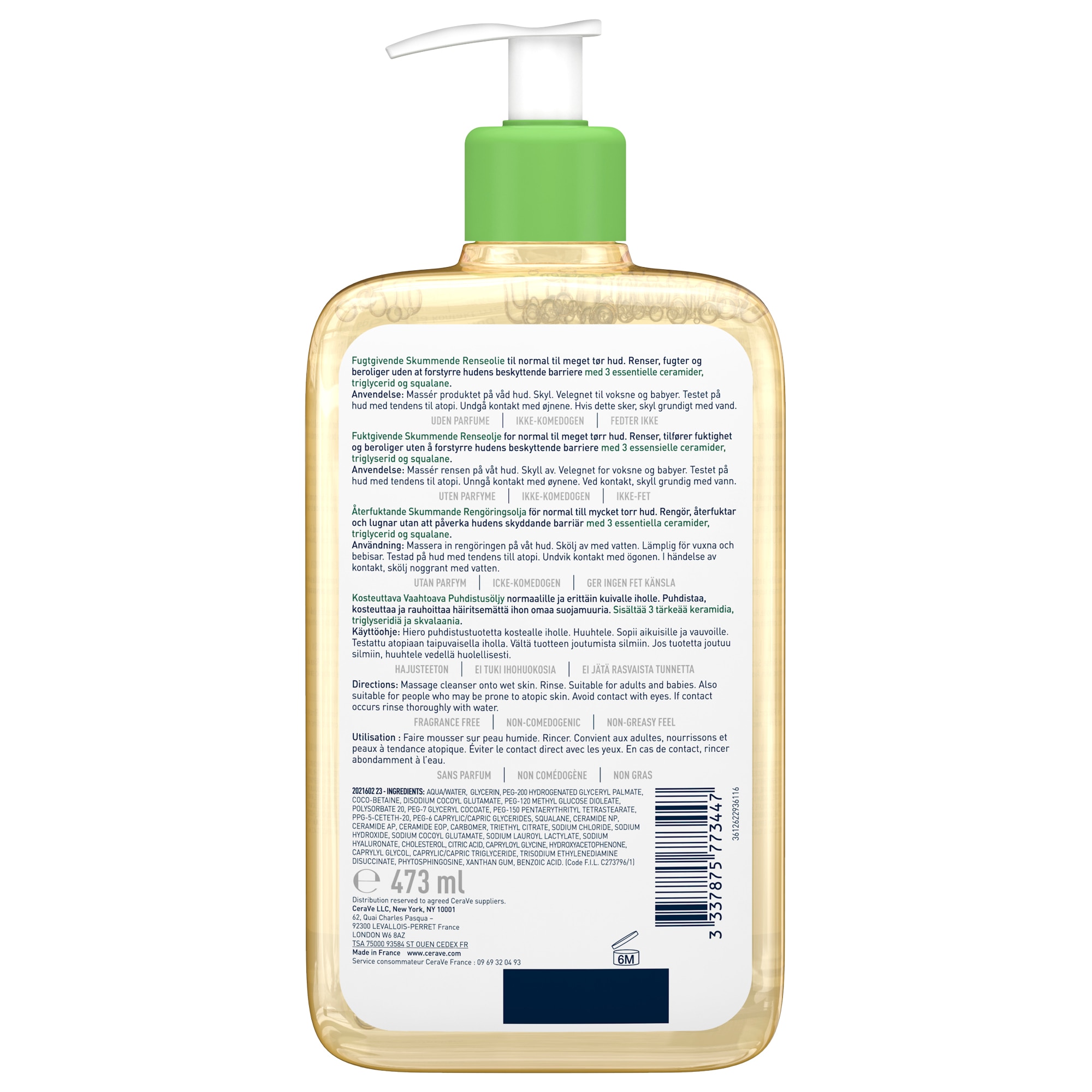 СЕРАВЕ Хидратиращо измиващо олио за лице и тяло за нормална и много суха кожа 473 мл