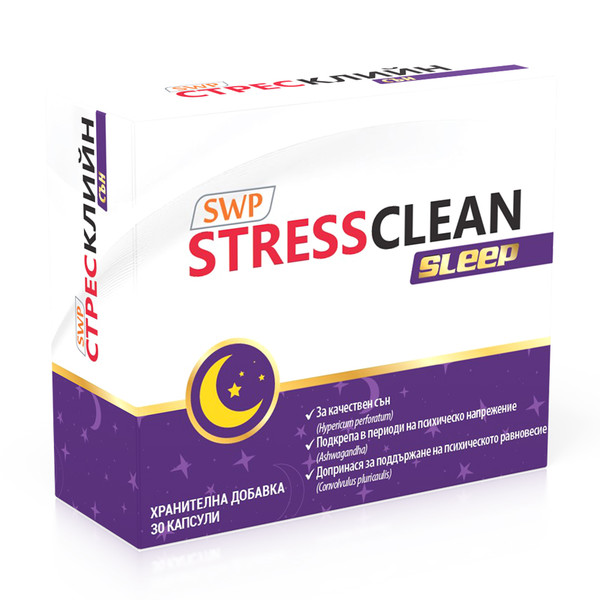 Стрес Клийн Слийп е натурална хранителна добавка, съдържаща растителни екстракти, които повлияват благоприятно върху качеството на съня и спомагат за по-лесното и бързо заспиване.